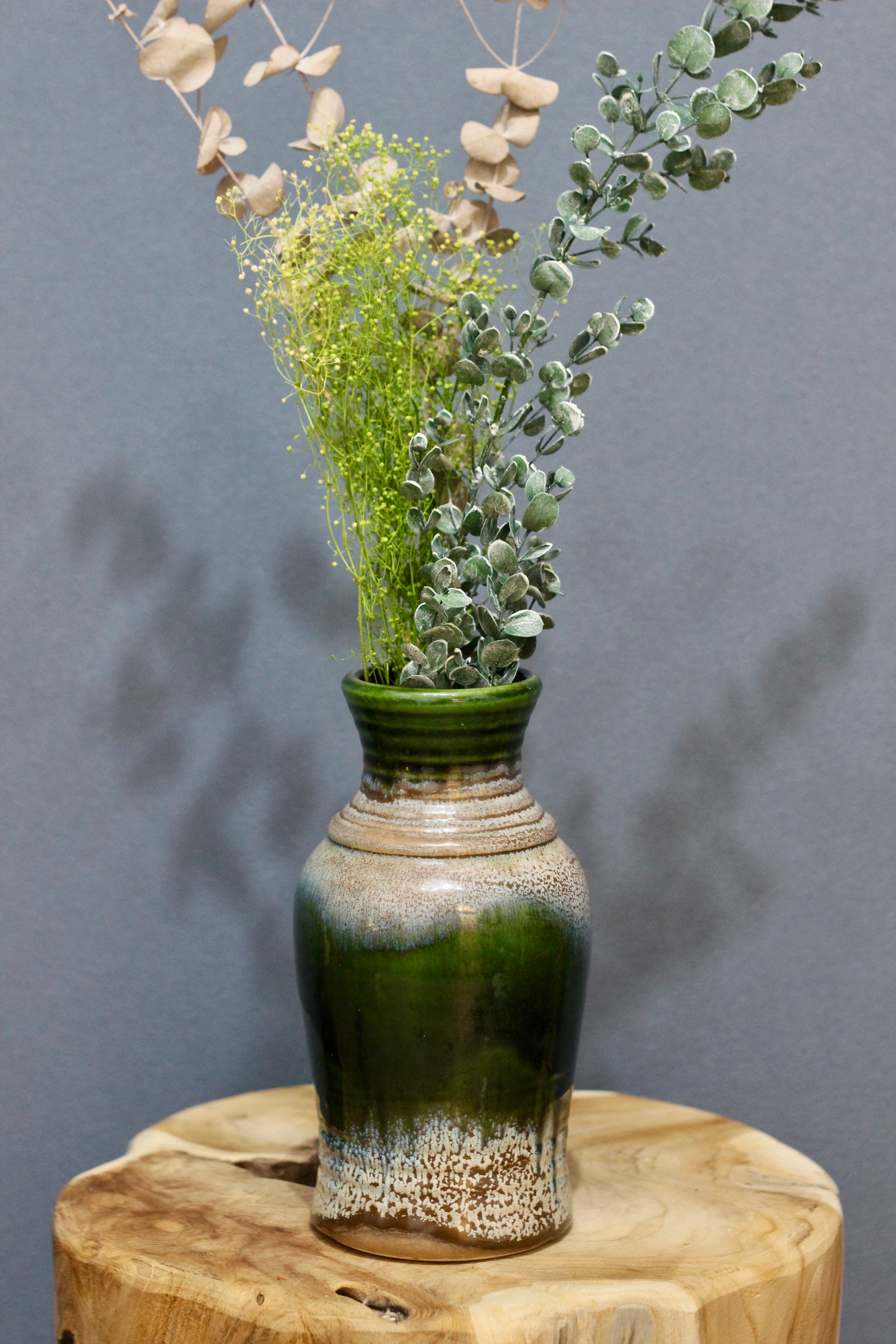 高さ20cmと程よく、枝物・ドライ・一輪挿しのどれにも合わせやすい万能サイズ。玄関・サイドボード・棚の上など、ちょっとした “余白” に置くだけで絵になる一点です。